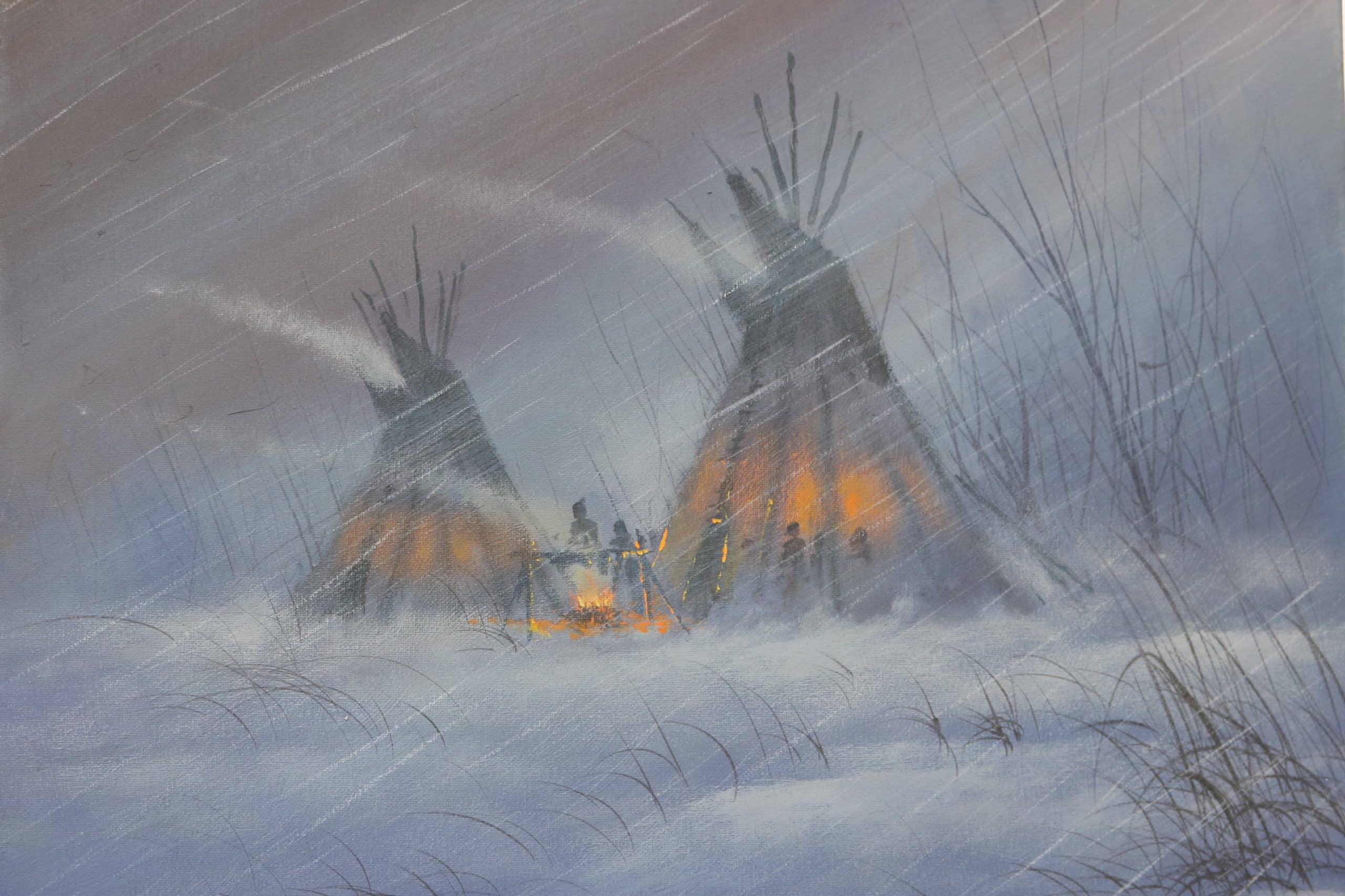 Atmosphere like dust, haze, wind, rain, fog, smoke, etc., is a challenge for most artists. In this study of the Indian teepees, Jerry shows how to create wind, fog, and mist by creating proper undertones and overtones using washes (glazes), the proper brushes, brush pressure, correct moisture content, and tonal values. The process is a delicate and exciting one that will add great interest to your work. These techniques can be used for any season where a hazy atmosphere is needed! We know you will love this one as you have asked for guidance on atmosphere conditions repeatedly. Have fun experimenting and applying these tips to your paintings!