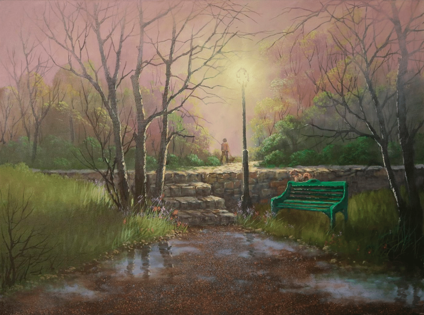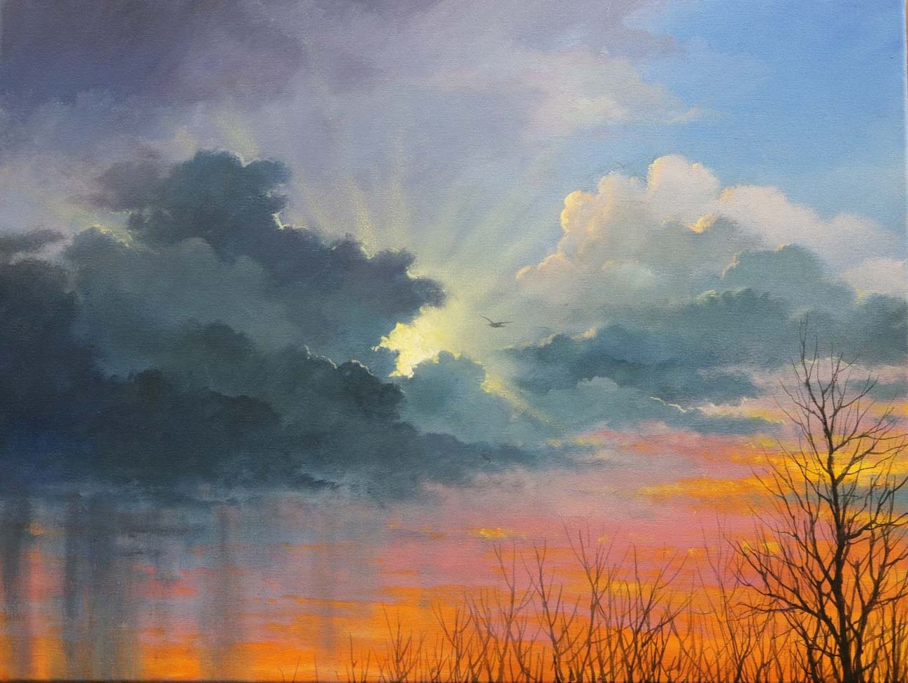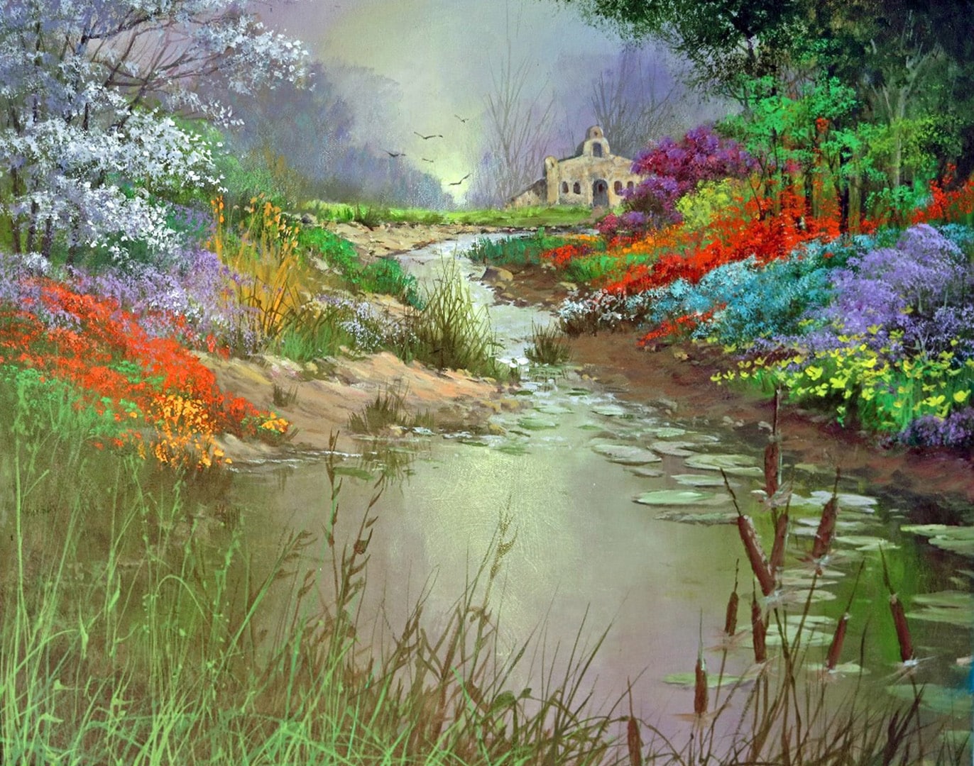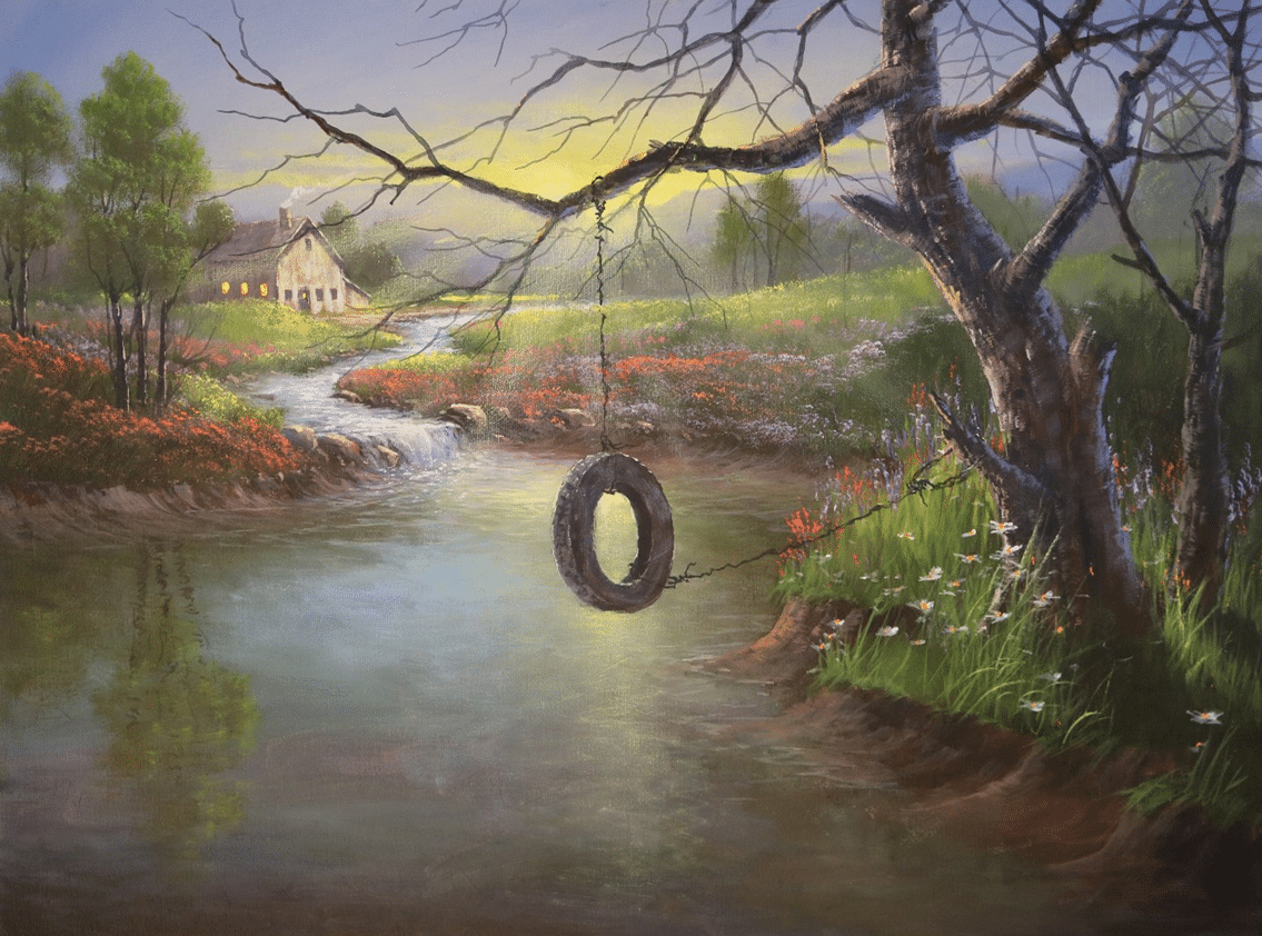 This is the final step where you put in all of the final highlights, brighter colors, flowers, tree highlights, ripples in the water, etc. So just enjoy finishing this up however you wish, but here are a few suggestions: